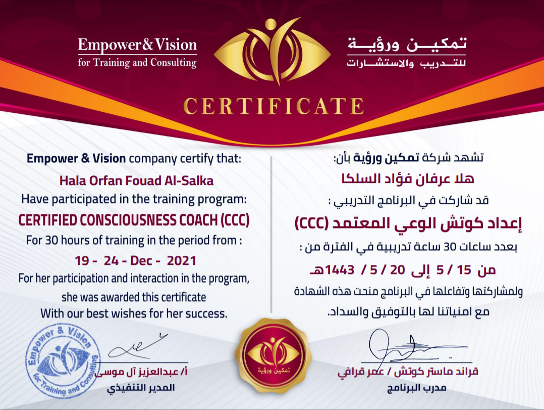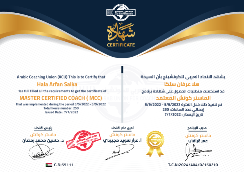 طموحي كان أكبر من مجرد الإكتفاء بما هو موجود، فكنت أشعر أنني بحاجة إلى شيء أكبر في مسيرتي المهنية. أدركت أنه لا يكفي العمل بدوام كامل لأشعر بالأمان، وكان يجب أن أبحث عن شيء أكثر تحقيقًا لرغباتي وطموحاتي. لذلك، قررت أن أغير مساري، وأبدأ رحلة جديدة من التعلم والبحث. لقد عملت بجد، وتعلمت الكثير، وما زلت أتعلم حتى اليوم. دخلت في مجالات متنوعة، وأمضيت سنتين كاملتين أكتشف فيها ما أحب وما أستطيع أن أقدمه. تعلمت مهارات إنسانية رائعة، وحققت فيها نجاحات ملحوظة، وحصلت على شهادات متقدمة. ثم قررت أن أواصل رحلة التعلم والتطوير، فحصلت على شهادة تدريب المدربين المحلية والعالمية، وبدأت بتدريب الآخرين منذ عام 2019. وفيما بعد، حصلت على شهادة ماستر كوتش في الكوتشنغ، وبدأت أقدم جلسات كوتشنغ للأشخاص الذين يريدون التغيير والنمو. ثم جاء دوري في الكاريزما، فكنت من الأوائل الذين حصلوا على شهادة مدرب وكوتش كاريزما في العالم العربي، وبدأت تدريب الآخرين فيها. لكن، تذكروا أنه لم يكن بإمكاني الوصول إلى هذه المرحلة بين عشية وضحاها. كانت رحلة مليئة بالتحديات، والمثابرة، والنجاح خطوة بخطوة. وأخيرا قررت من خلال خبرتي أن أساعد السيدات فوق الأربعين ليصلن للنجاح الذي وصلت إليه
